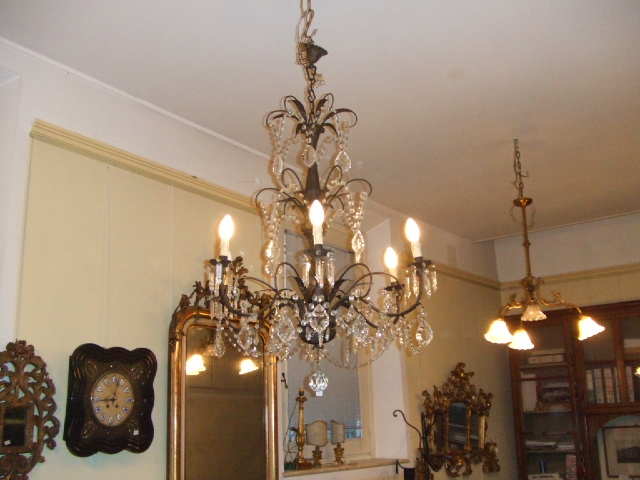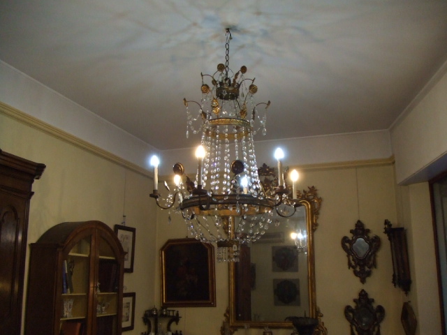 Lampadario Impero a 6 luci in metallo e cristalli,Napoli inizio XIX secolo