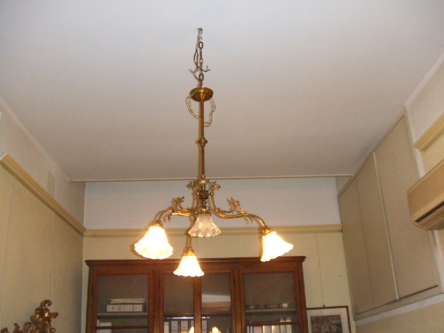 Lampadario Liberty a 4 luci in ottone inixio XX secolo